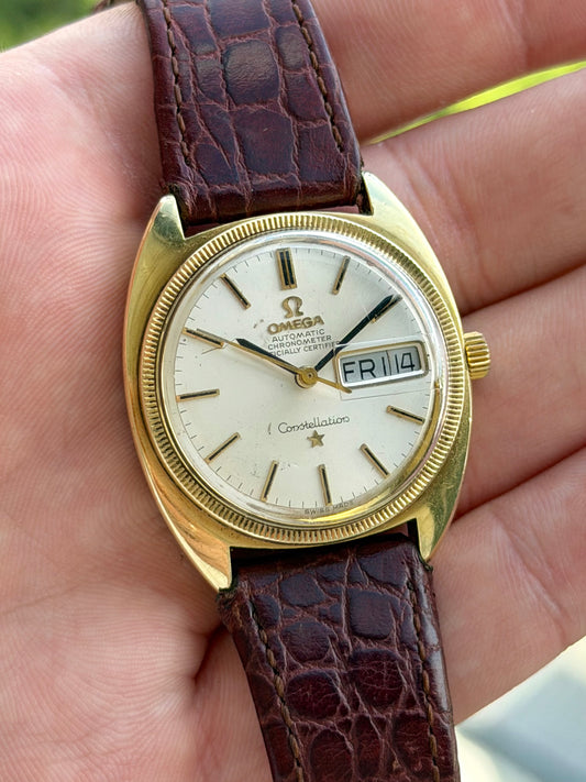 Omega Constellation White Dial 18k Gold Bezel
