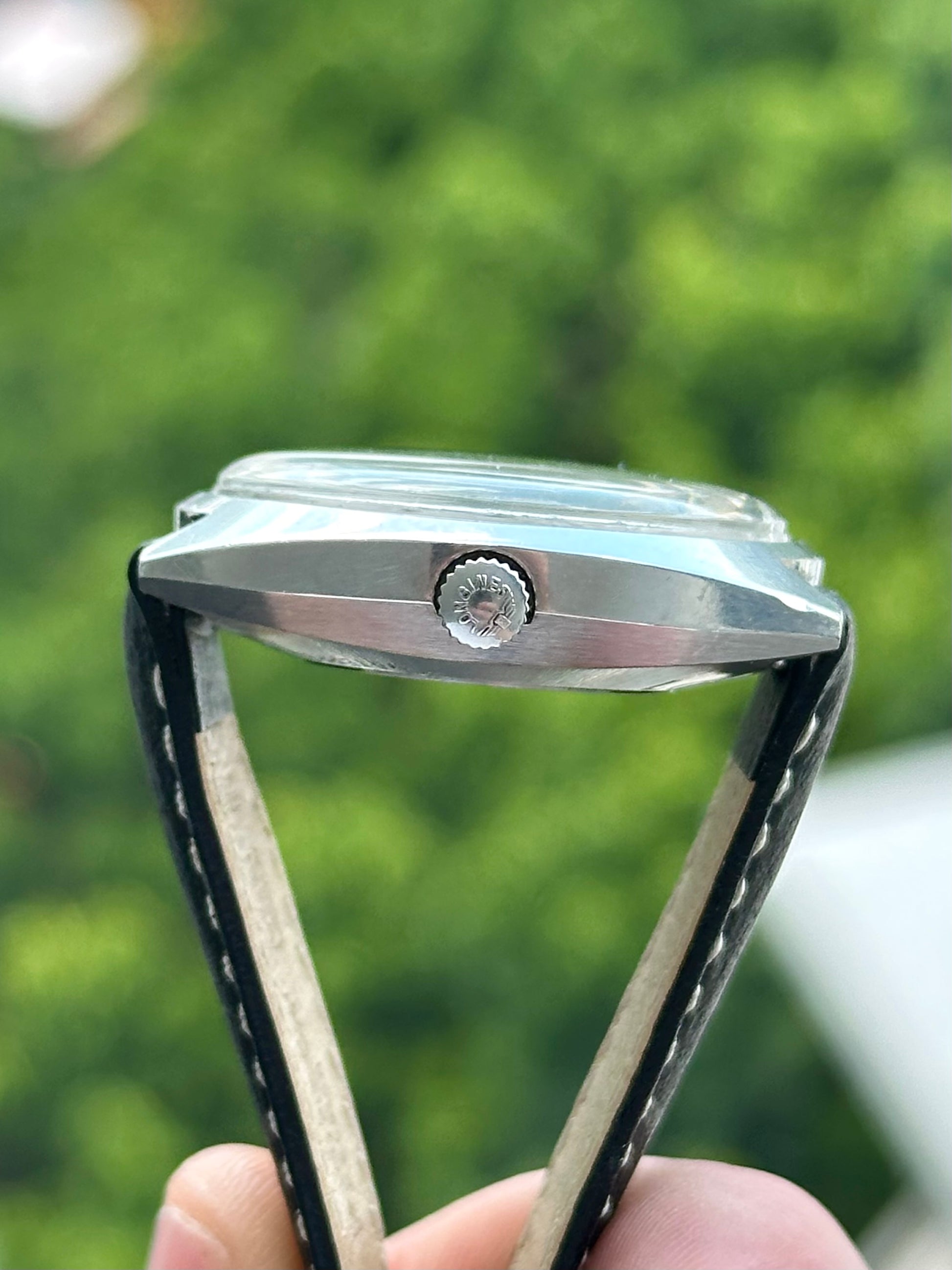 What's for sale is a very clean example of a vintage Longines from 1969. Featuring a grey dial with red minute track, this watch definitely has some character.