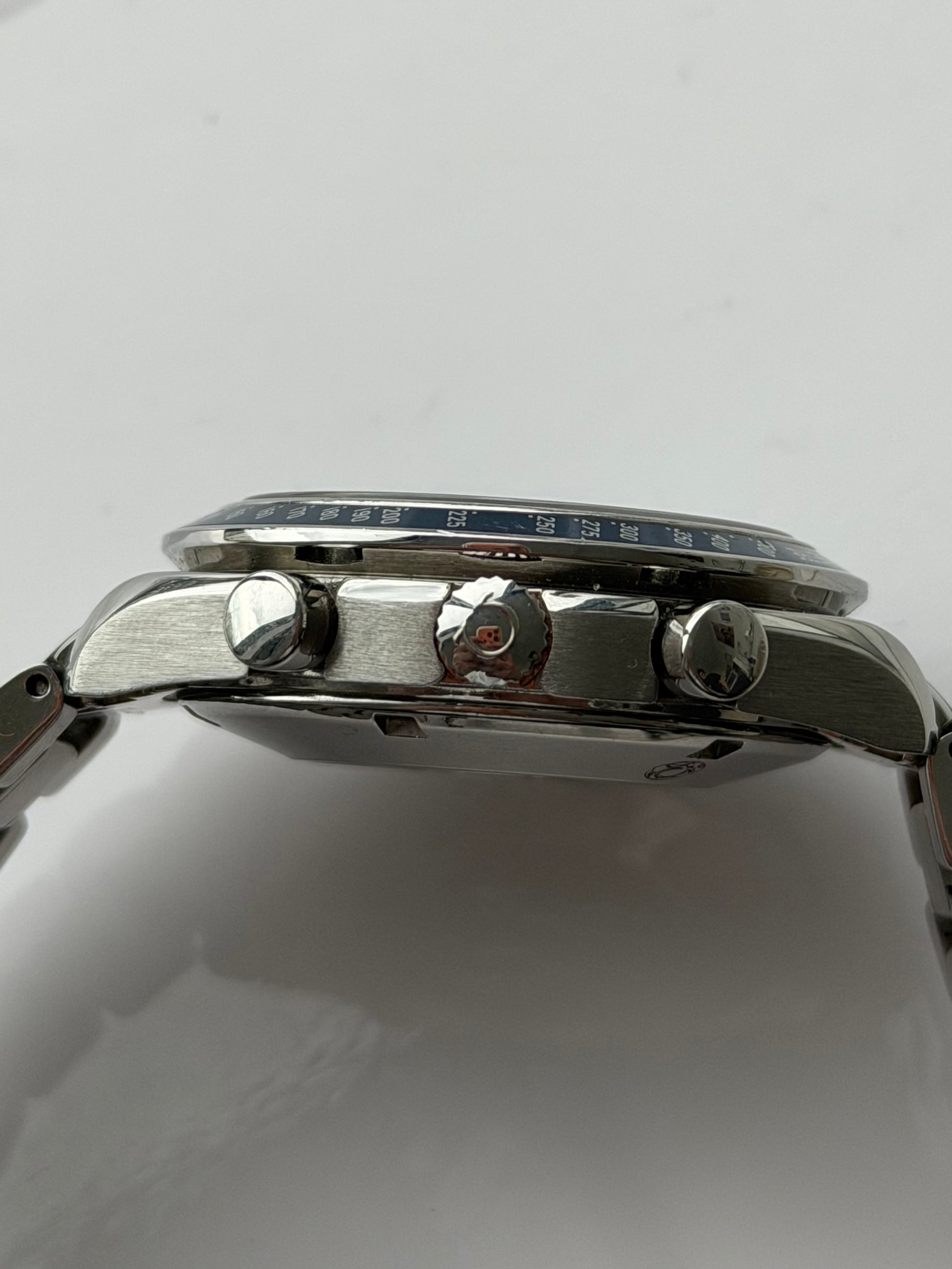 Whats for sale is a watch that many people forget about. Aside from the speedmaster professional there lies a wide range of vibrant speedmasters like this one. Featuring a blue dial and bezel, this watch has a certain different character with the speedmaster professional whilst still remaining true to the feel of the speedmaster line.